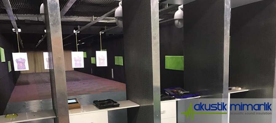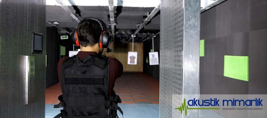 Atış Poligonu ses yalıtımı uygulamalarını iki şekilde inceleyebiliriz. Birincisi dışarıya giden sesleri geçiş kaybına uğratıp izolasyonunu sağlamak.İkincisi silah atışı olan poligonda yüksek seviyede ses çarpışması sonucu oluşan yankıyı engellemek amaçlı uygulamalar geliştirmektir.